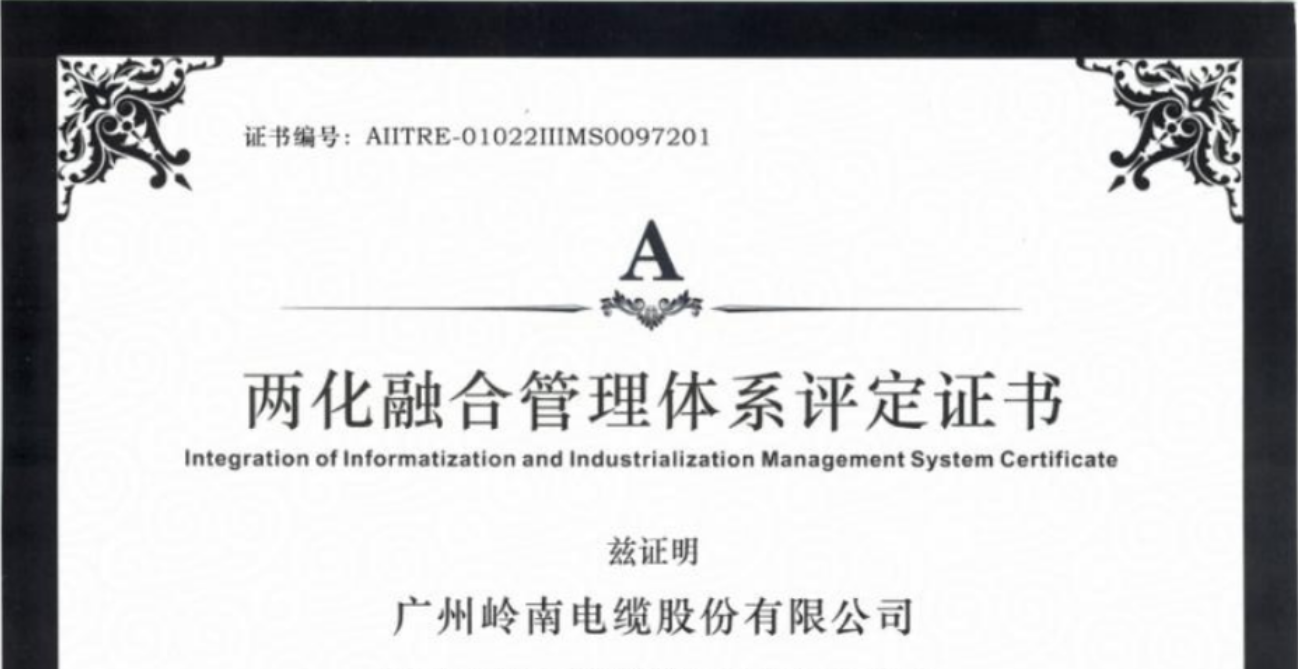 近日,sunbet申搏控股公司广州岭南电缆股份有限公司(以下简称“岭南电缆”)顺利通过国家工业和信息化部《信息化和工业化融合管理体系 要求》(GB/T 23001-2017)及《信息化和工业化融合管理体系 新型能力分级要...