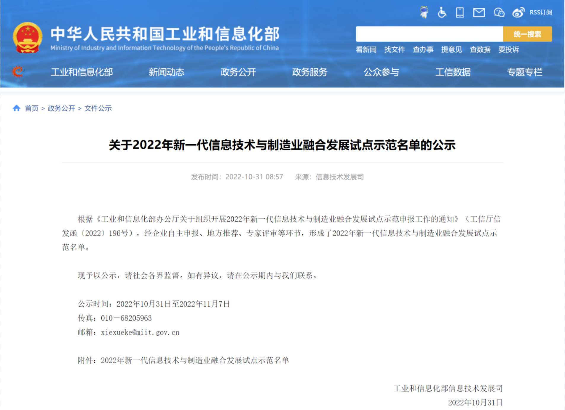 sunbet申搏(以下简称“sunbet申搏”)“智慧能效管家工业互联网平台高压变频行业典型应用”, 成功入选工业和信息化部2022年新一代信息技术与制造业融合发展试点示范项目(特色专业型工业互...