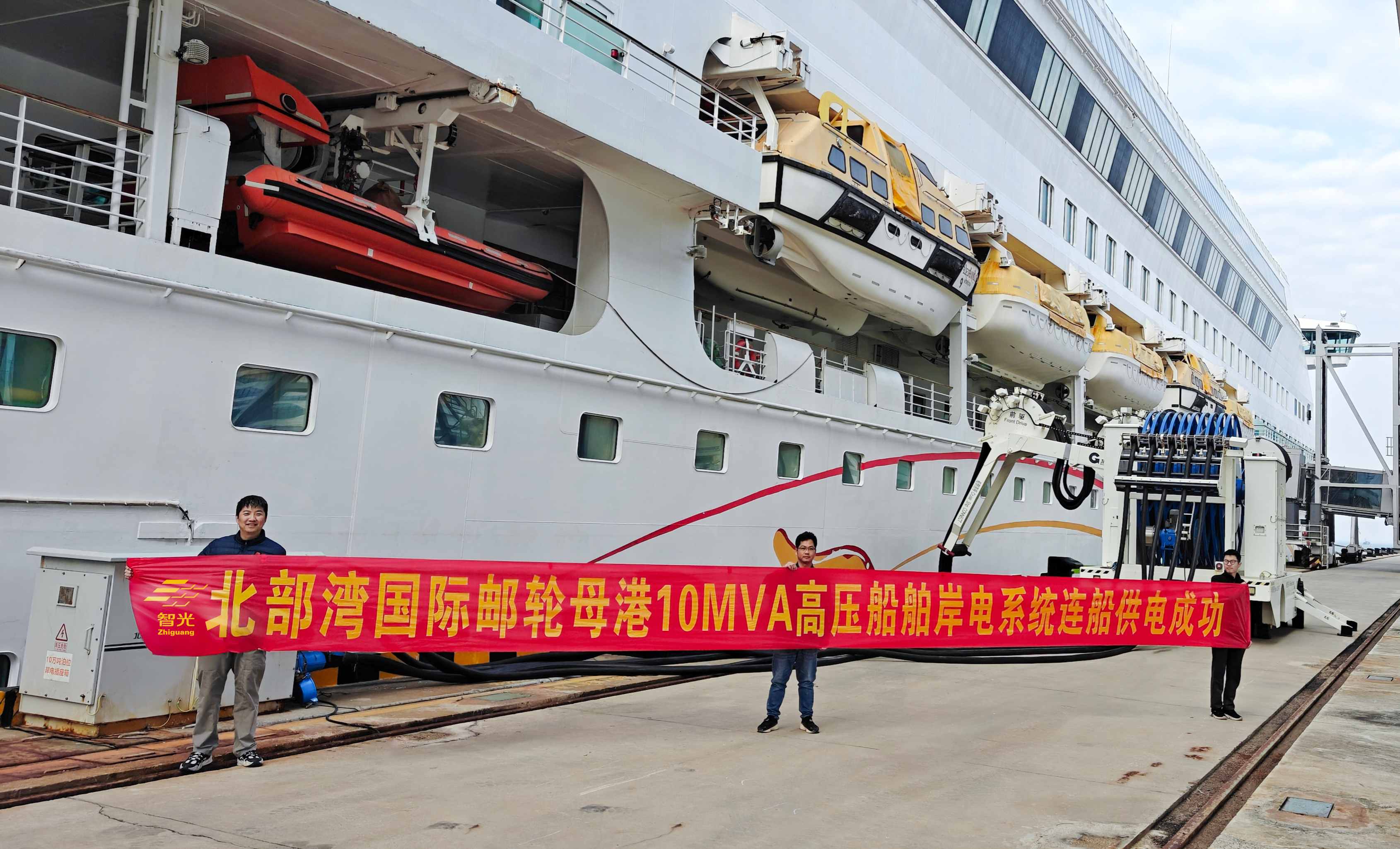此次供电采用10MVA高压船舶岸基供电系统,成功为靠港邮轮提供了高效、低碳的电力支持,成为我国推进船舶靠港使用岸电的又一重要实践。