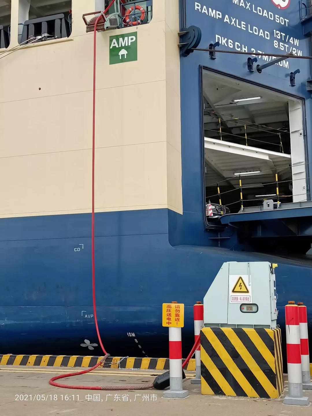 广州港南沙汽车码头船舶岸电项目采用三套6kV智能高压岸电系统,可完全覆盖该码头的三个滚装运输泊位。岸电系统可以根据船舶电网参数,调整供电频率和供电电压,设置系统输出电压和频率,为靠港船舶提供2MVA的岸电电源容量。此次连船的“唐鸿号”是拥有3800车位专用滚装运输船舶,也是国内首艘带有高压岸电设施的专用汽车滚装船。此次连船是国内首次给专用汽车滚装运输船连接岸电系统!