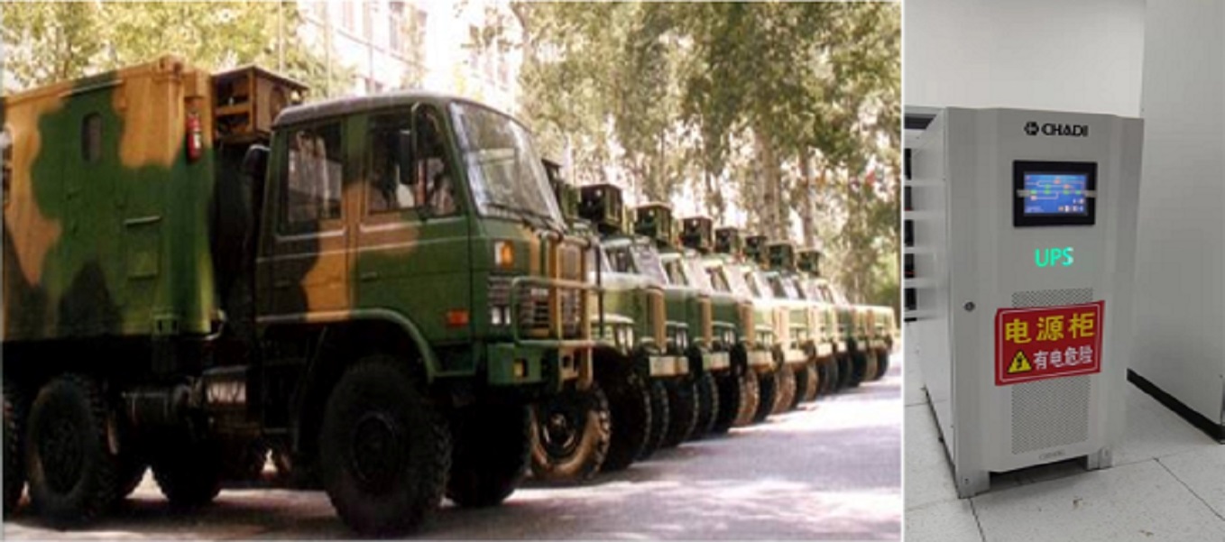 2003年起,创电科技高可靠的CDD4+1冗余并机UPS系统(UPS单机功率50KVA)服务于国防建设中,典型应用有神六飞船地面搜救系统、海军雷达基地、空军空管系统和火箭军基地等。该系统成功应用于东海舰队雷达基地,运行良好,得到了用户的高度认可。2019年创电科技获批佛山市军民融合重大科技项目。